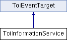 ToiInformationService Interface Reference DescriptionThe Information Service is a responsible for collecting and storing information objects, i.e. simple string key/value pairs. The data is retrieved from different adapters, e.g. infocast, flash file system and firmware. Each adapter is a source and possibly a destination where the information object can be set. Some of the adapters are editable through the set and unset methods. The editable adapters are divided into volatile and permanent, where the volatile data is lost at reboot and platform restart (caused by standby or other reason) while the permanent data is stored permanently. If an object is available in more than one adapter, the service will use the value in the highest priority adapter. There is a strict priority order, which means that setting a value may not have any effect if a higher priority adapter has a value for the object.