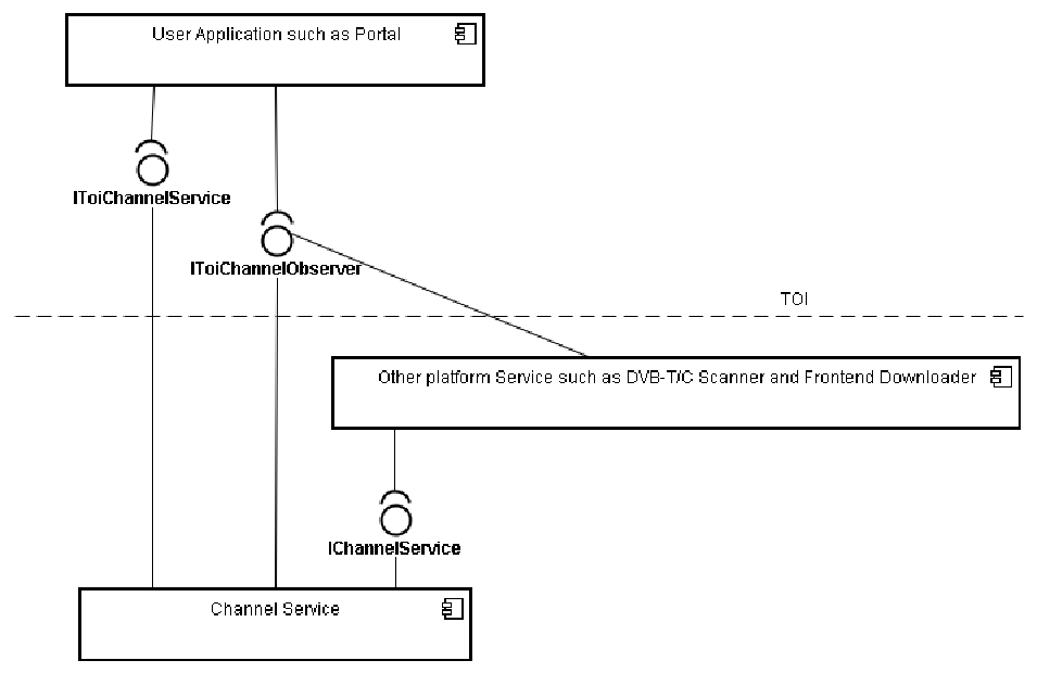 Channel ServiceChannel is basic store and query unit of Channel Service. It is the associated set of video and audio and subtitle components that can be played through STB. It's comparable to the concept of program in PSI or service in SI. A channel in the channel service has a unique id and a set of associated properties. Each property is represented by one key - value pair. A Channel property consists of a property id and a property value. They also have a type (integer, string, boolean etc.) and a flag that indicates if they are a system defined property or not. The Channel Service is used for retrieving channel information from channels stored by the KreaTV platform and for storing channels found during channel scanning process such as DVB scanning. And it also provides one observer mechanism to notify applications when some channels have been added or changed or removed. The interface of Channel Service is generic and not tied to a specific type of channels/services. Overview